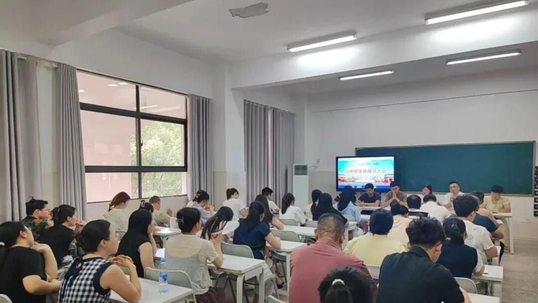 宜春四中吴校长以"大思政"育人格局构建为破题之钥,以《固本强基 立德树人》为题,从思政育人、协同育人、安全育人三大维度,通过鲜活案例解析新时代教师角色定位,提出"以德立身、以爱育人、以智启慧"的实践路径,为教师点亮育人明灯。 谢副校长以《备课与上课的艺术》为题,提出"三定六备"备课法与"导入十步法"、"结尾八策略"等实用工具,强调试卷讲评需从“就题论题”转向“思维进阶”,为课堂提质增效提供方法论支撑。 邓副校长以教学管理体系为核心,重点围绕提升高中部教学管理质量展开。报告中主要提出了以下几项关键举措:建立以主讲教师为核心的集体备课制度,完善以教学进度为节点的过程监督机制,构建以年级为主体的扁平化管理体系,以及开展以课堂教学为突破口的模式创新探索。 各班级则开展家庭教育指导情景模拟,通过"倾听—共情—建议"沟通模型,构建家校协同育人共同体。 ✦ 小学部 ✦ 初中部