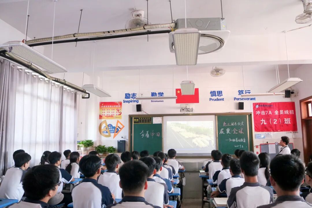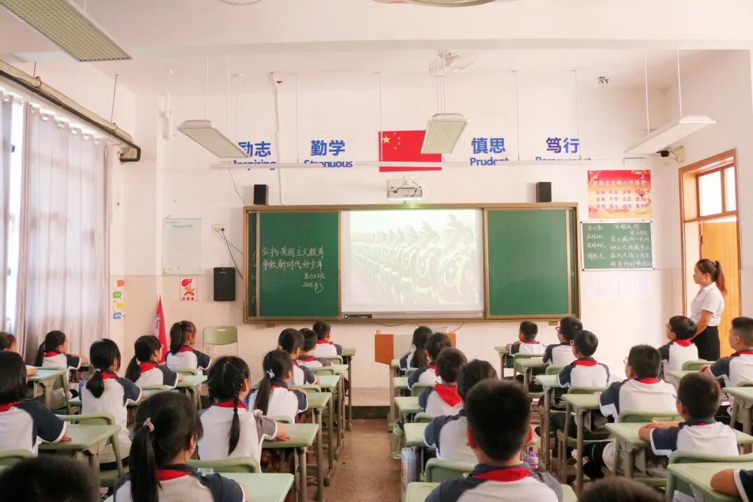 作为新时代的一员,与此同时,各个班级教室化身为一个个分会场。在班主任的组织下,全体学生通过多媒体一体机同步收看直播盛况。 当一个个威武的方阵走过、当新型战机翱翔于天际时,教室里不时爆发出阵阵惊叹和热烈的掌声。同学们被人民军队严整的军容、磅礴的气势所深深震撼,民族自豪感和爱国热情在每一位同学心中激荡。 这堂生动的“大思政课”让抽象的国家概念变得具体可感,将“天下兴亡、匹夫有责”的爱国种子,通过屏幕深深地植根于孩子们的心田。观看期间,同学们秩序井然,展现了我校学子良好的精神风貌。