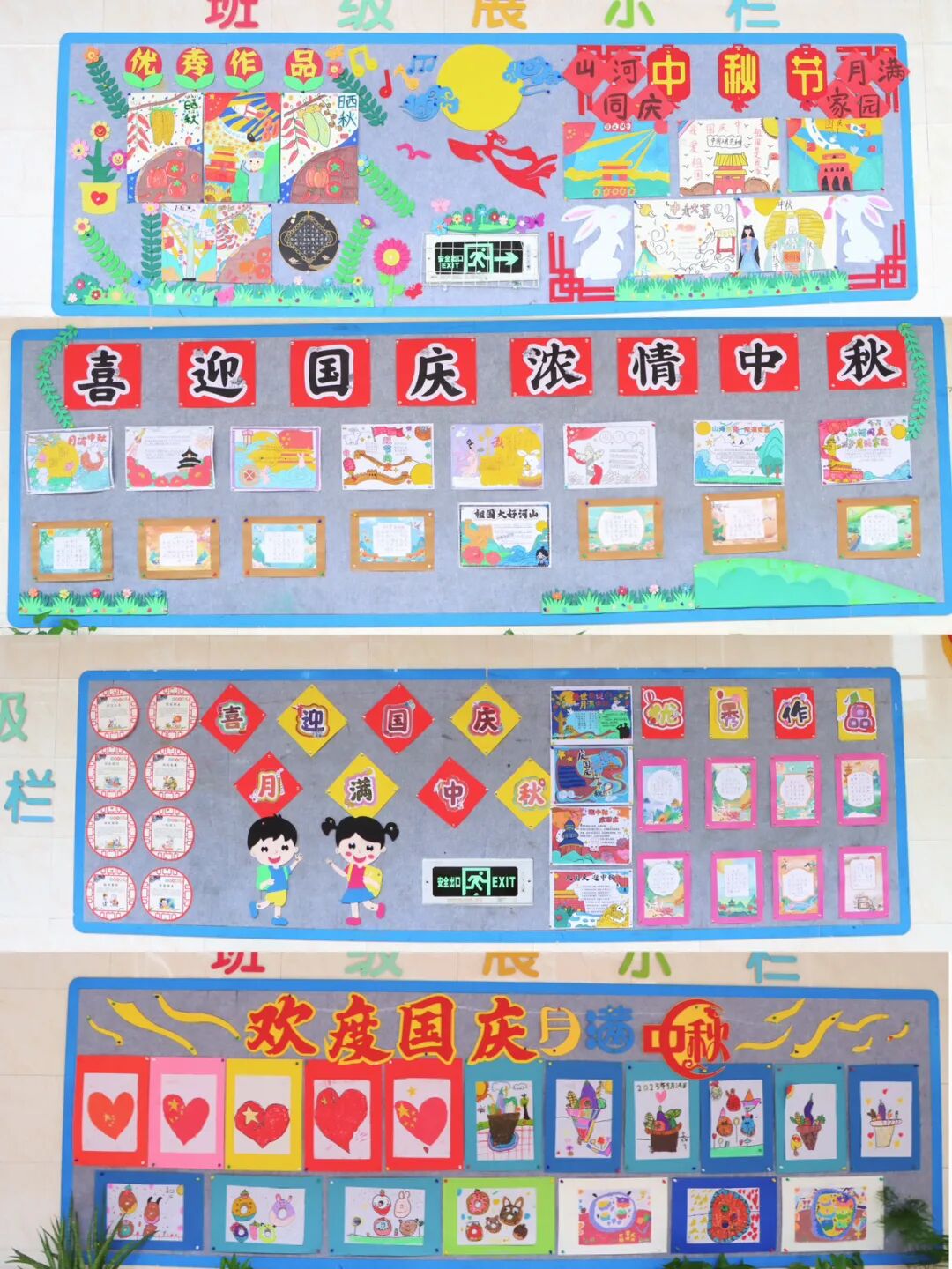 金风送爽,丹桂飘香,恰逢国庆与中秋携手而至,家国同庆,情意倍浓。为弘扬爱国主义精神,传承中华优秀传统文化,营造喜庆祥和的节日氛围,我校小学部特举办了以“月满华诞,情系家国”为主题的黑板报创作、班级展示栏布置与绘画比赛系列庆祝活动。全体师生以热情与创意,共同描绘出国泰民安、花好月圆的盛世图景。