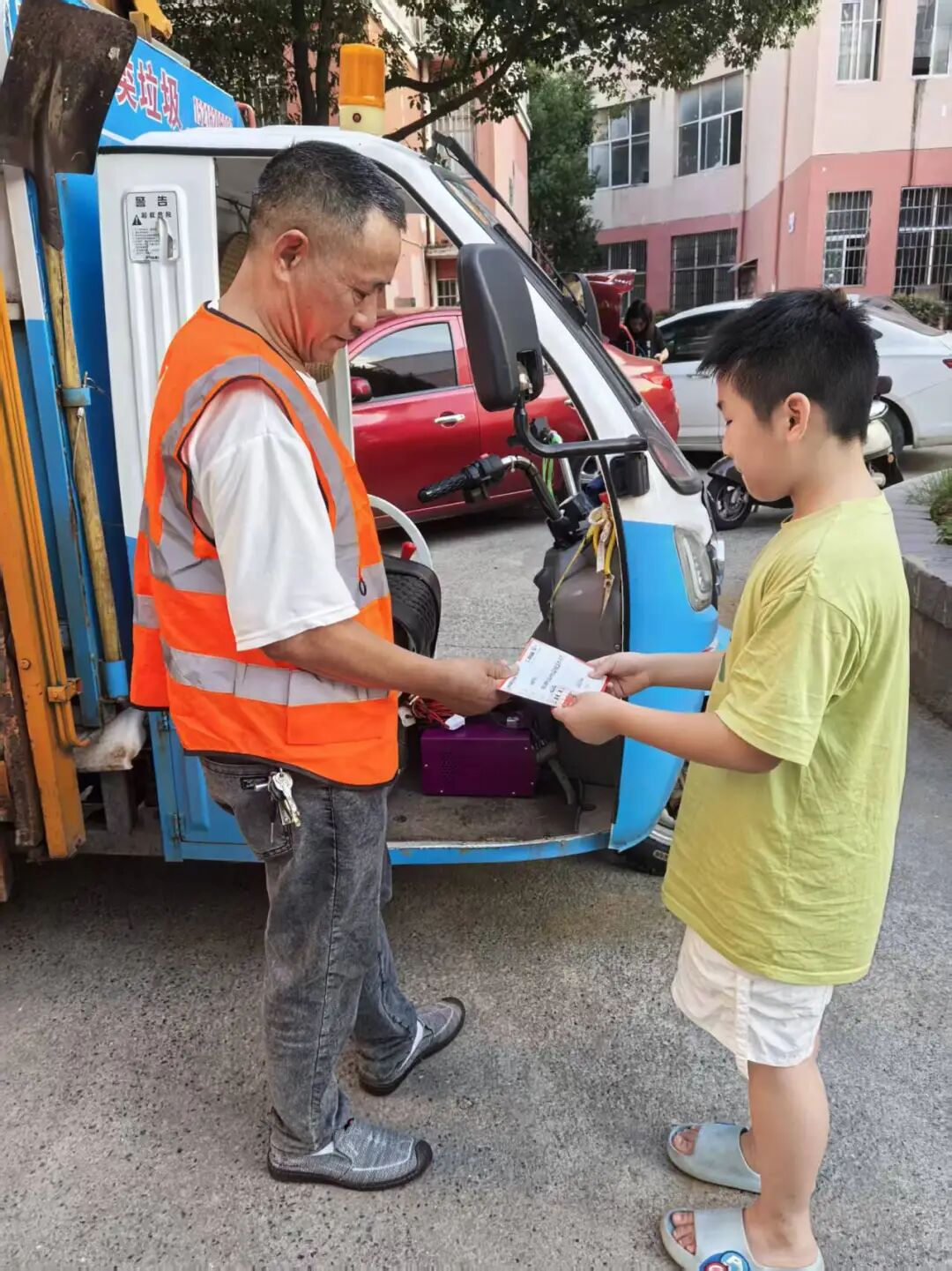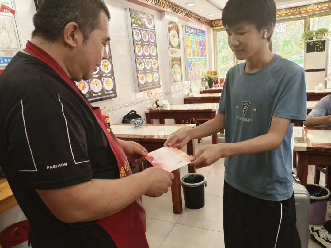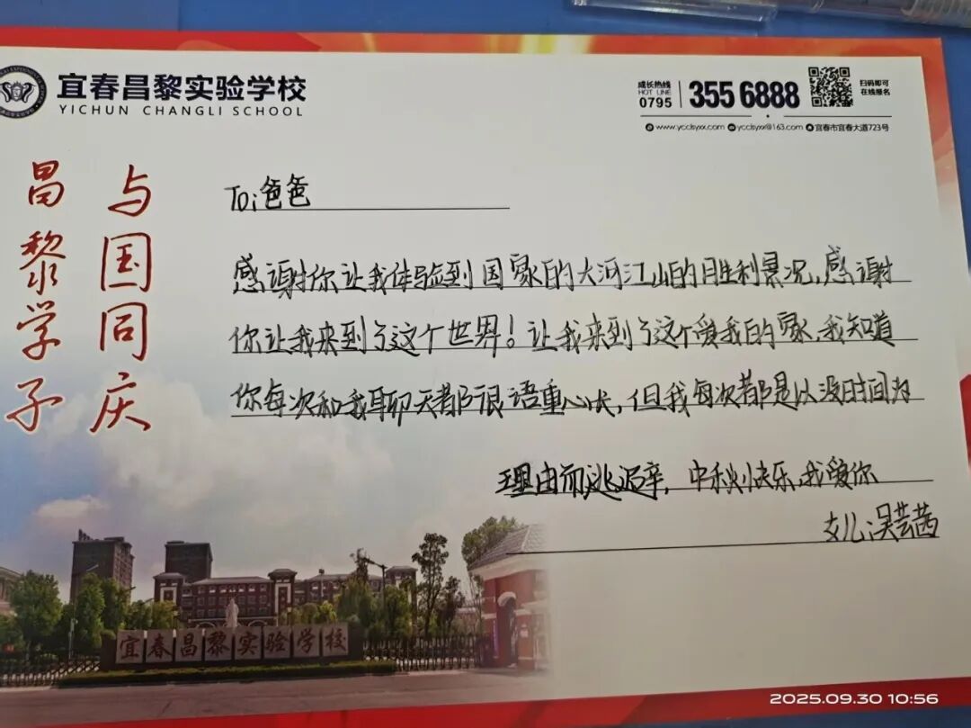 祝福因分享而加倍温暖。同学们手持精心设计、满载情谊的“双节”纪念贺卡,走向社区、公园,来到邻里与各行各业的劳动者中间。他们向长者送上中秋的问候,与孩童分享国庆的喜悦,同学们走上街头,慰问辛勤的环卫工人、维护秩序的交警同志,为他们送上写满敬意的贺卡。这一张张贺卡,如同温暖的使者,将节日的喜悦与校园的文明之风传递到城市的各个角落。