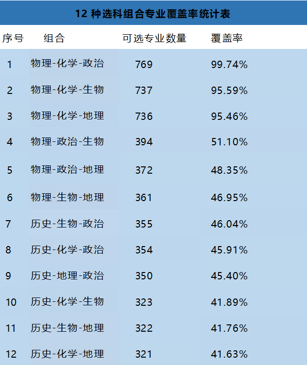 各选科组合专业覆盖率