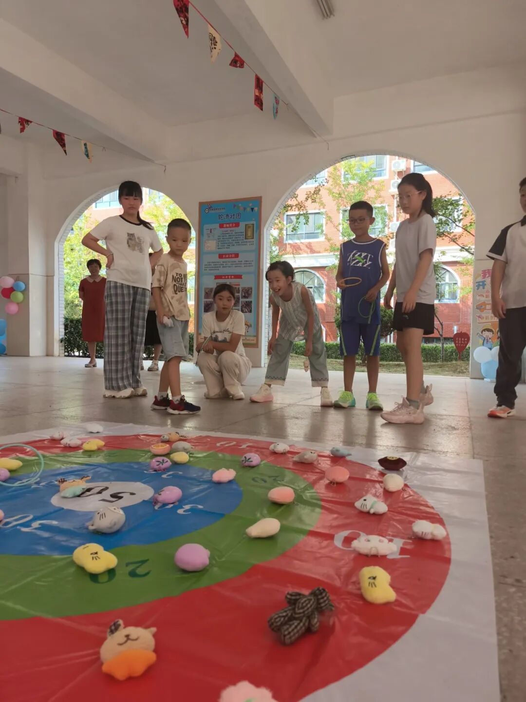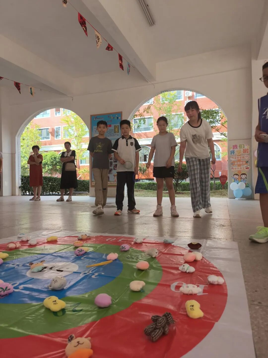 以沙包为矢,以梦想为的。今日的欢笑,源于这片小小的“靶场”。 孩子们手中的沙包,仿佛是为新学期定下的一个个小目标。它投出的不止是一份力量,更是一份期望。 积蓄力量,稳住心态,精准发力——这正是学习与成长的缩影。 也许不是每次都能投中圆心,但每一次尝试都离目标更近一步。愿你们在新的学年里,也能像今天一样,心中有方向,手中有力量,勇敢地将自己的“沙包”投向最远、最美好的未来!