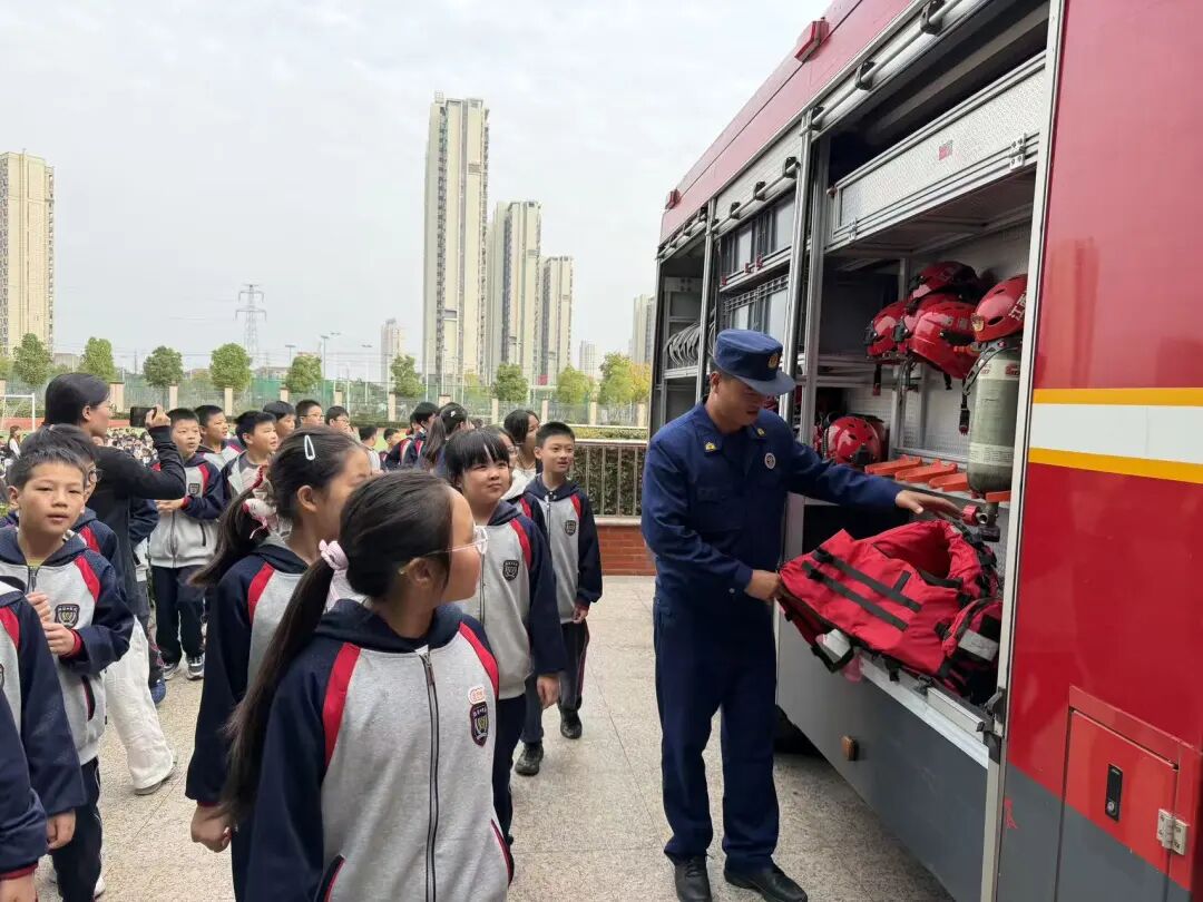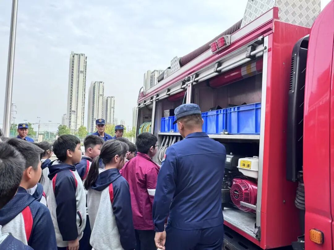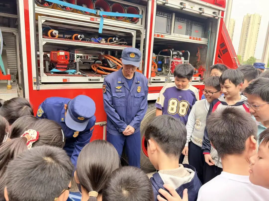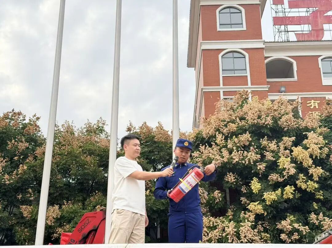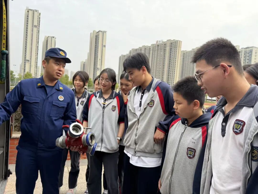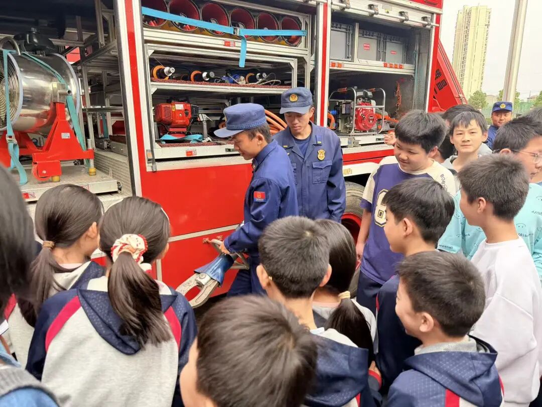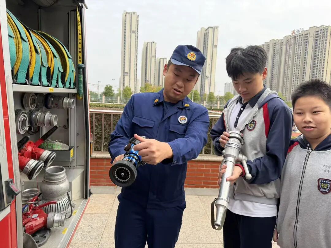参观结束,消防员为大家详细讲解了灭火器和消防水枪的使用方法。从灭火器的正确拿取姿势到消防水枪的操作要领,消防人员专业而细致地讲解,让师生们对消防器材有了更深入的了解。