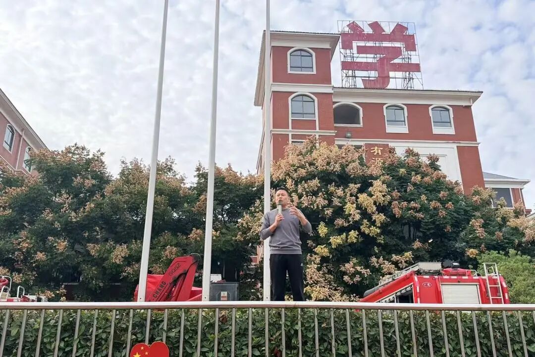 在操场集合后,李剑辉书记对演练过程进行了总结,肯定了师生们在逃生过程中的表现,同时也指出了需要改进的地方。并强调,火灾发生时保持冷静、有序撤离是确保安全的关键。