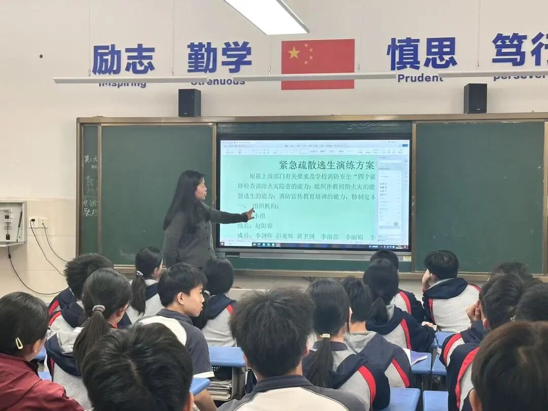 为确保消防应急疏散演练活动顺利进行,安全防范意识落实到每个人,学校提前制定了详细的消防应急疏散演练方案,并成立了专门的领导小组。演练前,各班班主任在班会课上组织开展了“消防安全教育”主题班会课。老师向学生们讲解防火、灭火和逃生等安全常识,强调疏散时“快、稳、齐”的要求,并提前做好心理疏导,避免恐慌,为演练顺利开展打下良好的基础。