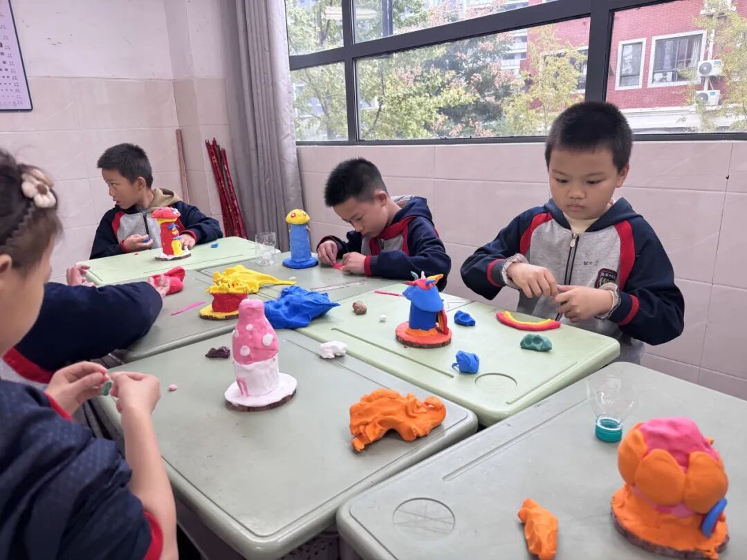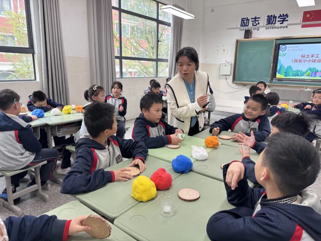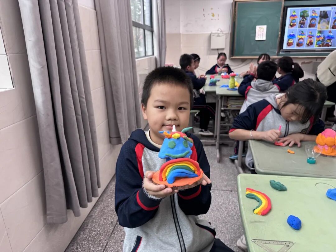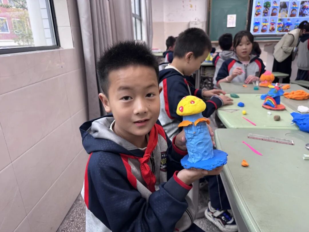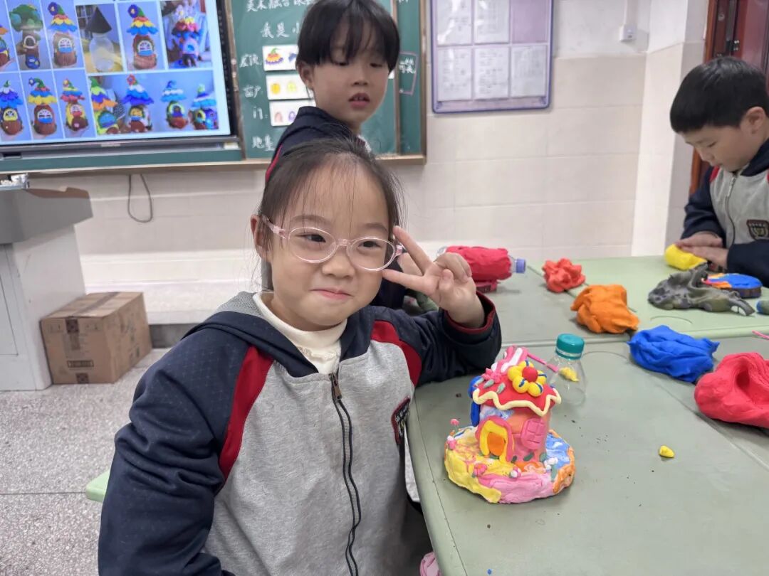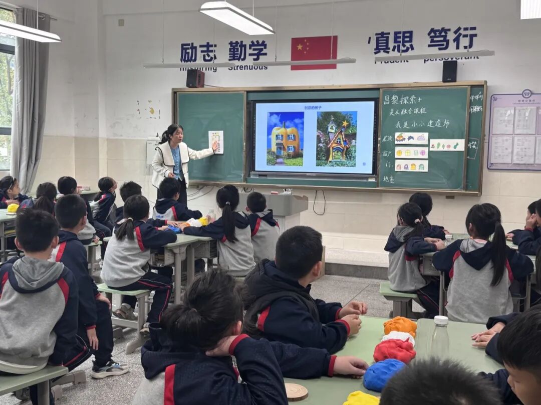 美术融合课刘兰老师以“我是小小建造师”为主题,以学习色彩搭配和建造房屋为任务,首先老师用问题导入:“你的理想房屋是怎样的?”鼓励孩子独立思考,勇于发言。接着带着孩子们学习房屋外部整体结构及造型,整堂课刘老师积极引导,让孩子们动手用黏土制作房屋,课堂氛围活跃,实现了让孩子们在玩中学,学中玩。