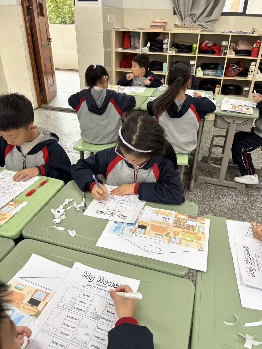 这节课孩子们通过动手动脑的学习方式学习了7个房屋的词汇和介绍房子的句型,最后通过学习任务清单巩固本节课所学知识。
