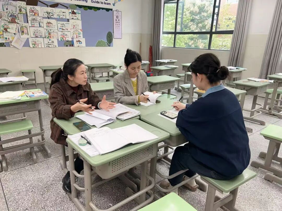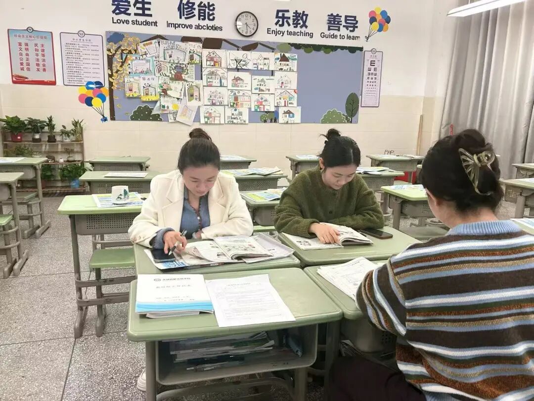 课前共研:集思广益,优化设计 在本节课的备课阶段,教研组多次围绕“如何让词汇教学贴近生活、驱动运用”展开专题研讨。老师们结合学情,对教学情境的连贯性、活动梯度的设计以及育人目标的融合路径提出了具体的建议。王玲老师充分吸纳集体智慧,对教学设计进行了多轮优化,并在课件制作、教具准备上投入了大量巧思,为课堂实施奠定了扎实基础。 课堂亮点:情境引领,活动促学 本节课最大的亮点在于真实、连贯的情境创设。王老师充分利用教材中Chen Jie在养老院志愿服务的图片与故事,通过生动的讲述,瞬间将学生带入社区服务的温暖场景。学生们在理解“making the bed”、“singing old songs”等短语时自然而轻松,学习兴趣与参与热情被充分激发。 在教学活动上,王老师设计了小组竞赛描述场景、角色扮演模拟帮忙等多样化任务。学生们在互动合作中积极运用语言,不仅提升了语言交际能力,更在实践中体会到帮助他人的意义。课堂讨论环节,学生们真诚分享对社区服务的看法,社会责任感的培养目标在语言学习中悄然达成。 课后评议:深度反思,共谋精进 课后,教研组及时开展评课,大家一致认为,本节课情境创设巧妙、活动设计有效、育人目标落实自然,是一节高质量的词汇教学课。同时,围绕教学时间的精准把控和不同层次学生的个体关注,老师们也展开了务实探讨,提出了诸如“设置明确时间提示器”、“设计分层任务卡”等具体改进建议,为后续教学优化提供了清晰路径。 教研研讨 教学反思:看见成长,明确方向