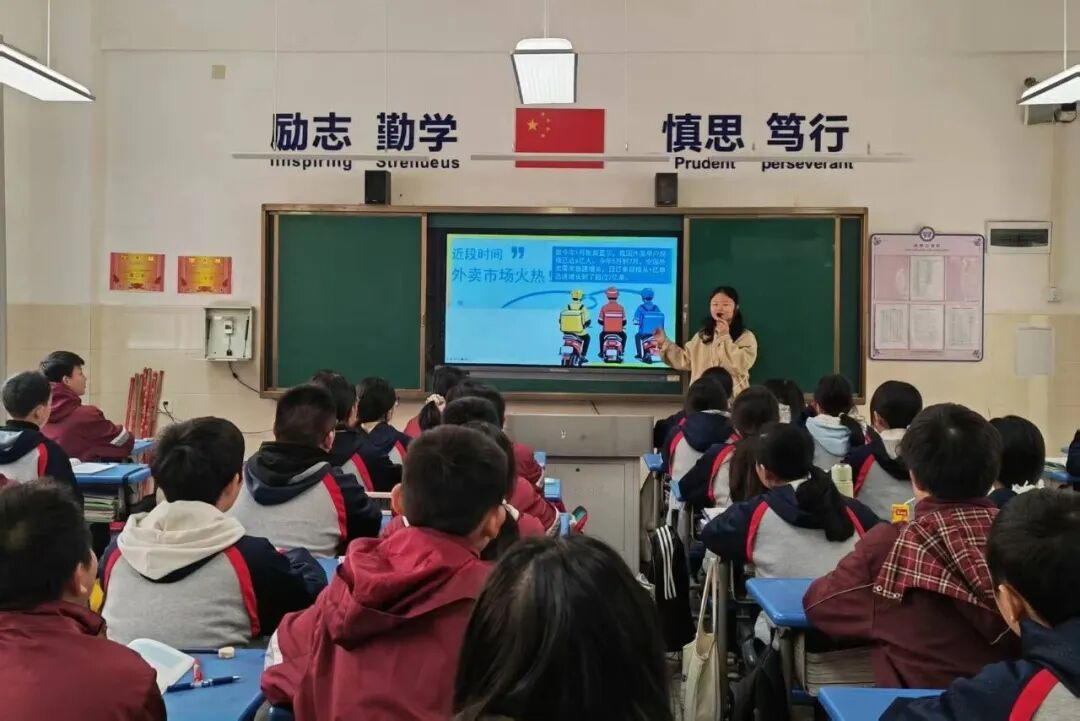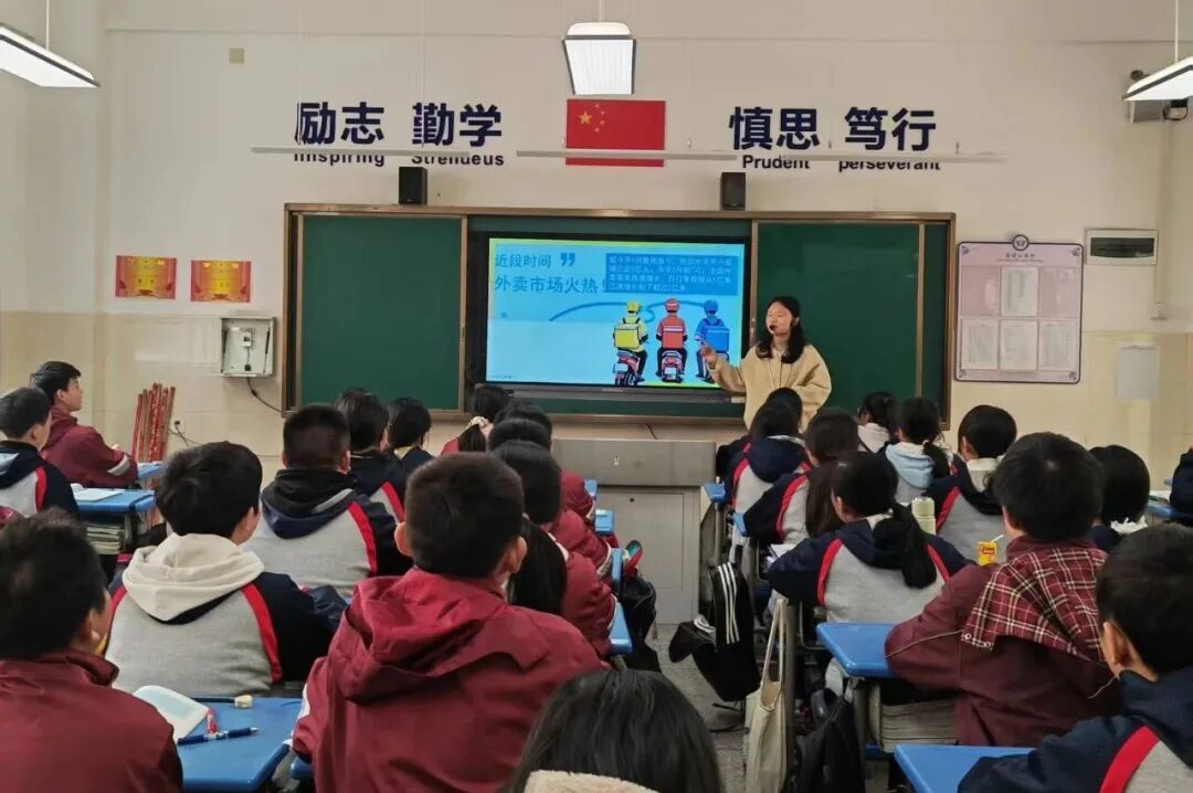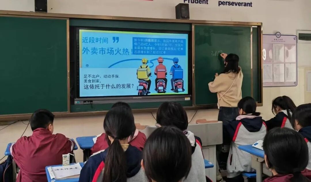 游淑慧老师执教的思政课《网络改变世界》,以生活常见的美团、京东、饿了么外卖场景切入新课,从学生日常消费体验出发,快速拉近课堂与生活的距离,引发情感共鸣与认知联结。教学过程中,教师创新融入AI对话互动模式,围绕网络对经济、生活、社会的影响等核心议题,通过AI智能提问、实时应答、观点梳理等功能,引导学生层层深入探究。从外卖背后的网络技术支撑,到网络对生产生活方式的变革,再到网络时代的责任与担当,AI对话串联起知识讲解、观点辨析、价值引领等环节,让抽象的思政知识在生活化导入与智能互动中更具活力与张力,知识呈现鲜活易懂,师生互动高效深入,教学流程清晰递进,切实达成知识传授与素养提升的双重目标。