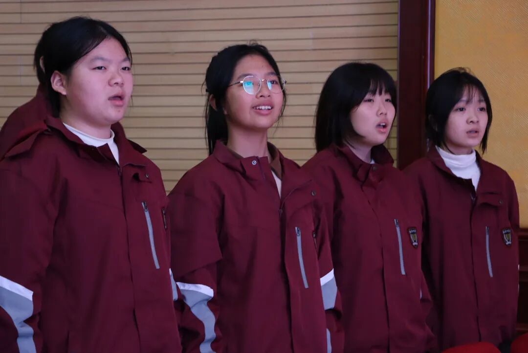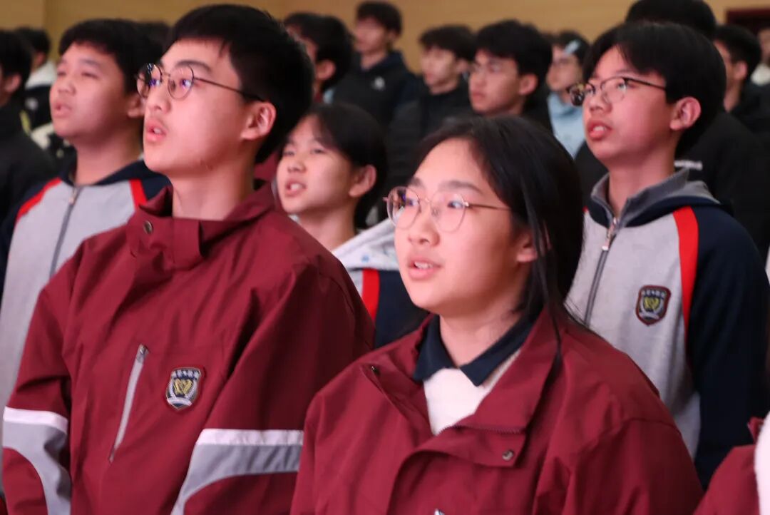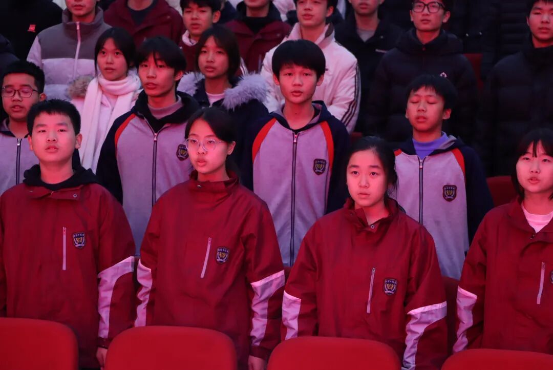 全体师生肃然起立,奏唱《中华人民共和国国歌》。激昂的旋律在会场回荡,拉开了这场青春仪式的序幕。
